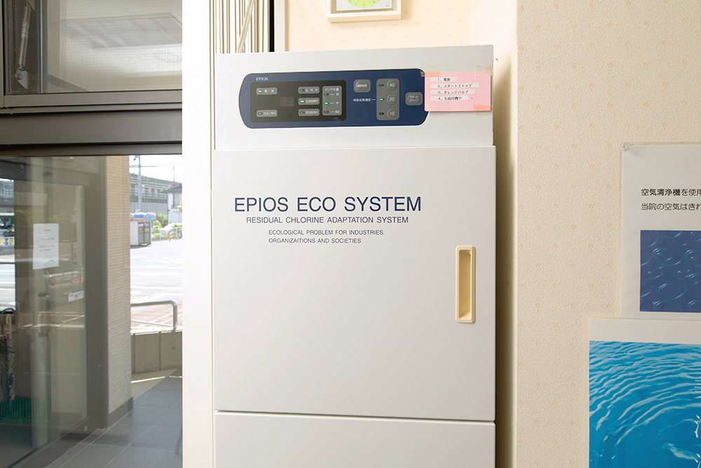 当院では2016年に、殺菌水を生成できる「エピオスエコシステム」を導入しました。この機械で生成した水は、人体にとってより安全なだけでなく、高い殺菌力が期待できます。